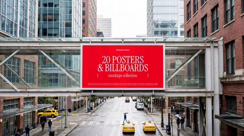 Each mockup features a high-quality poster or billboard — accurately scaled, thoughtfully lit, and easy to customize through smart objects.